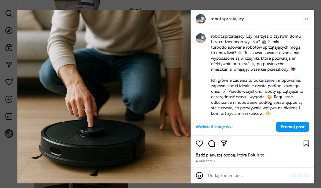 - Tworzy wersje posta (Facebook, Instagram)