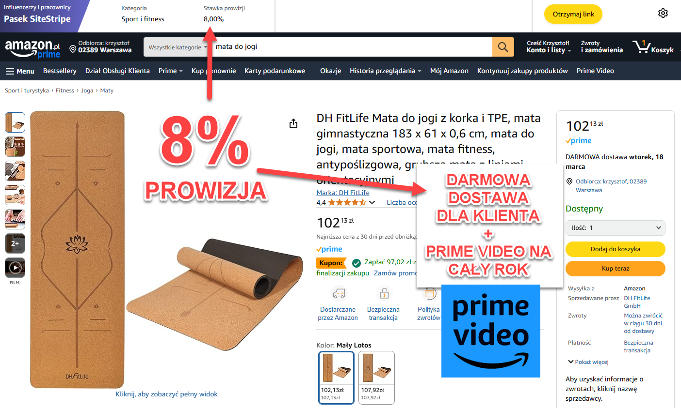 OD KAŻDEGO ZAMÓWIENIA OTRZYMUJESZ 8% PROWIZJI a KLIENT OTRZYMUJE DARMOWĄ DOSTAWĘ + PRIME VIDEO NA CAŁY ROK