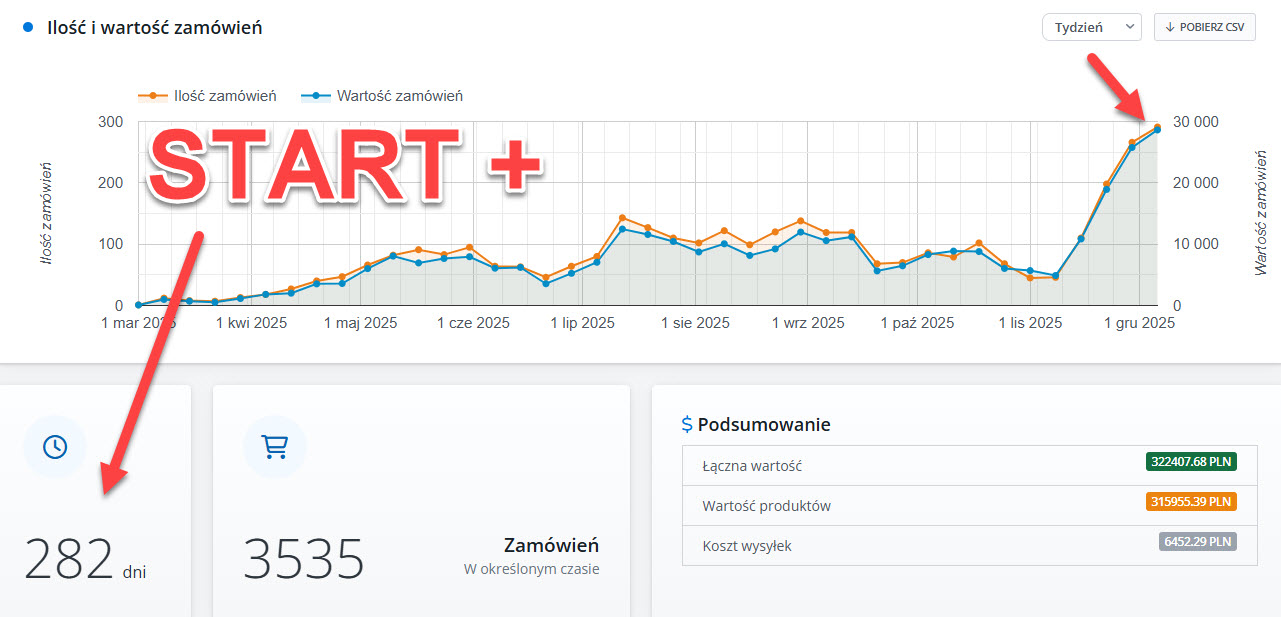 Zobacz jak rośnie sprzedaż sklepu od momentu przejęcia w czasie pierwszego roku współpracy.